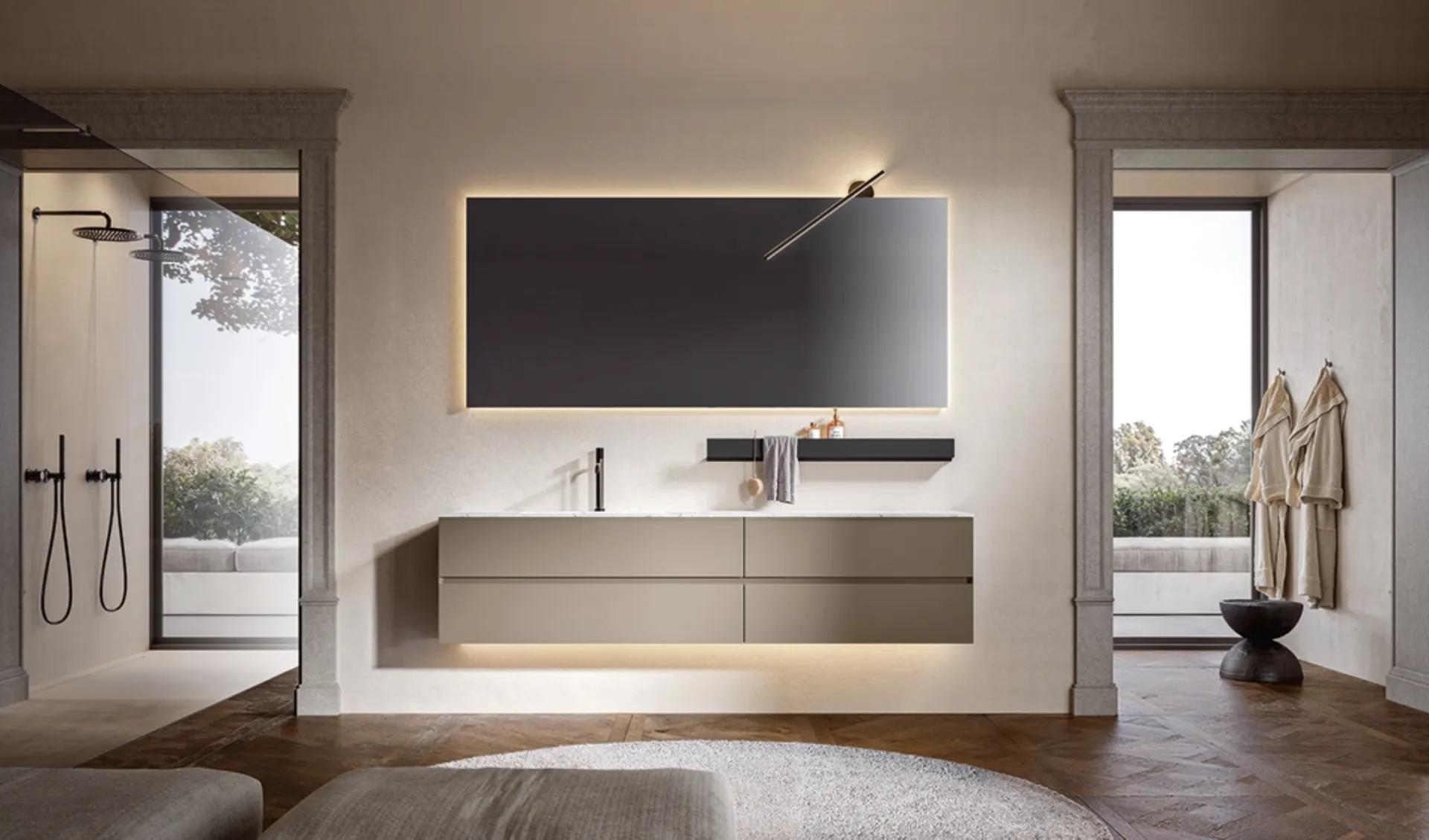 Discover our line of modern bathroom furniture and suspended bathroom furniture in matt lacquer, su