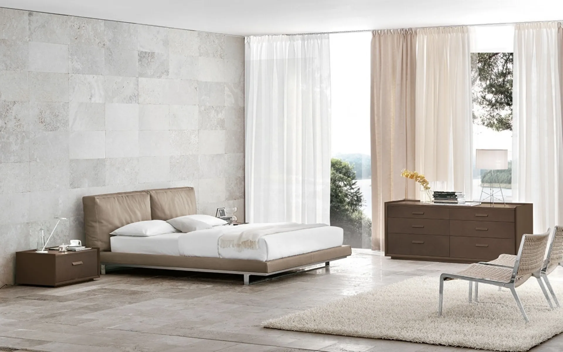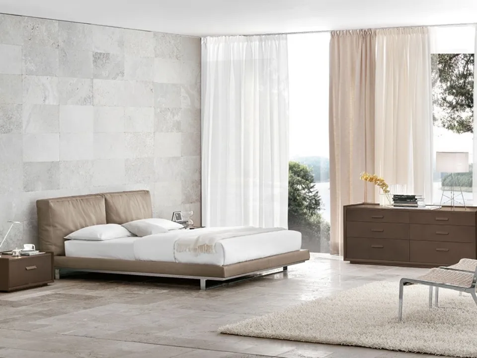 The Echo bed with headboard by Alivar is one of the most beautiful solutions from the signature, a specialist in good sleep, capable of ensuring functionality, comfort, and a unique design. Discover a wide range of upholstered beds from the best Furniture brands available in our store and optimize your bedroom. On our website, you will find the most valid solutions from the best brands specialized in bedroom furniture, with a wide range of customization options in terms of colors, combinations, accessories, and much more. The bedroom is the room in the house that best represents the taste of those who frequent it, a room dedicated to relaxation, unwinding, and privacy. If you want to ensure total comfort in your moments of rest, choose designer double beds in leather like the model shown in the photo.