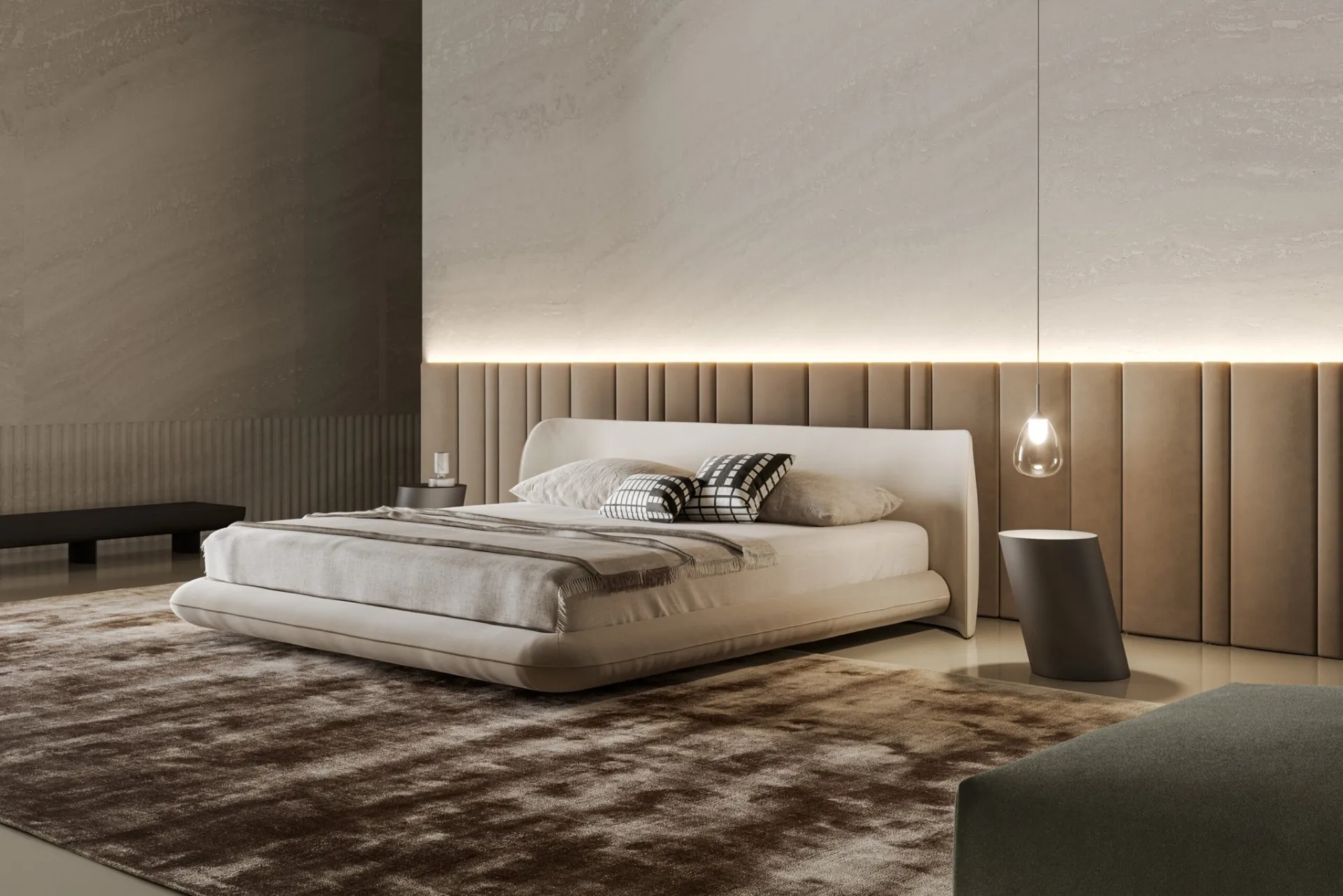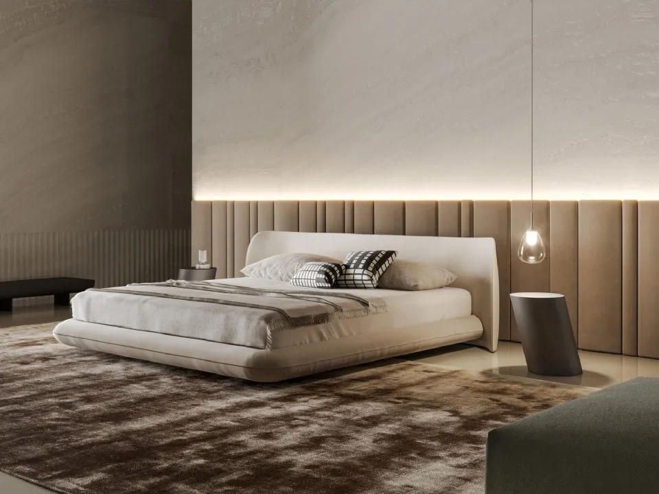 If you want to ensure total comfort in your moments of relaxation, choose leather designer double beds like the model shown in the photo. On our website, you can find the best proposals from top brands specializing in bedroom furniture, with a wide range of customization options in terms of colors, combinations, accessories, and more. The bedroom is the part of the house that best reflects the soul of those who frequent it, a room dedicated to rest, relaxation, and privacy. Discover a wide range of upholstered beds from the best furniture brands available in our store and enhance your bedroom. The Bonaldo Nubo design bed is one of the most exclusive solutions from the company, a specialist in good sleep, capable of ensuring functionality, comfort, and a unique design.