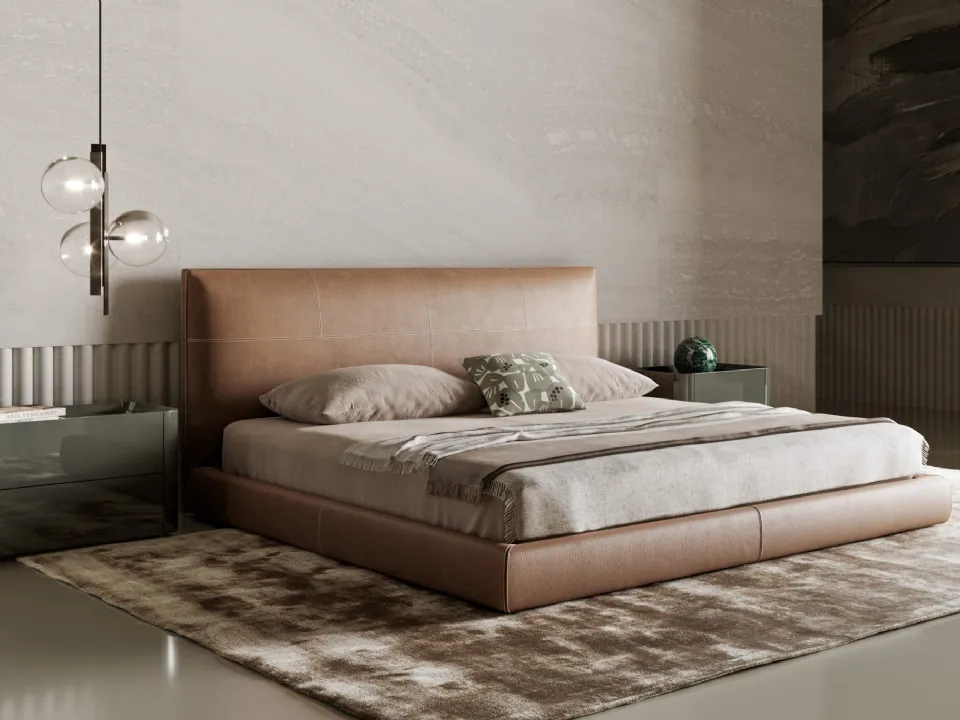 To complete the perfect furnishing of your bedroom, it is essential to consider the combination of the bed with wardrobes and bedside tables, accessories and whatever else: if you are looking for design furniture, the model in the photo is perfect for you. This is a product of great class, which represents all the excellence guaranteed by the brand's many years of experience in the sector. The Bonaldo Oris leather bed is one of the most exclusive products of the brand, synonymous with durability over the years, quality of finishes and a unique style. Contact us and discover more about our line of upholstered double beds: optimize your bedroom with our compositions.