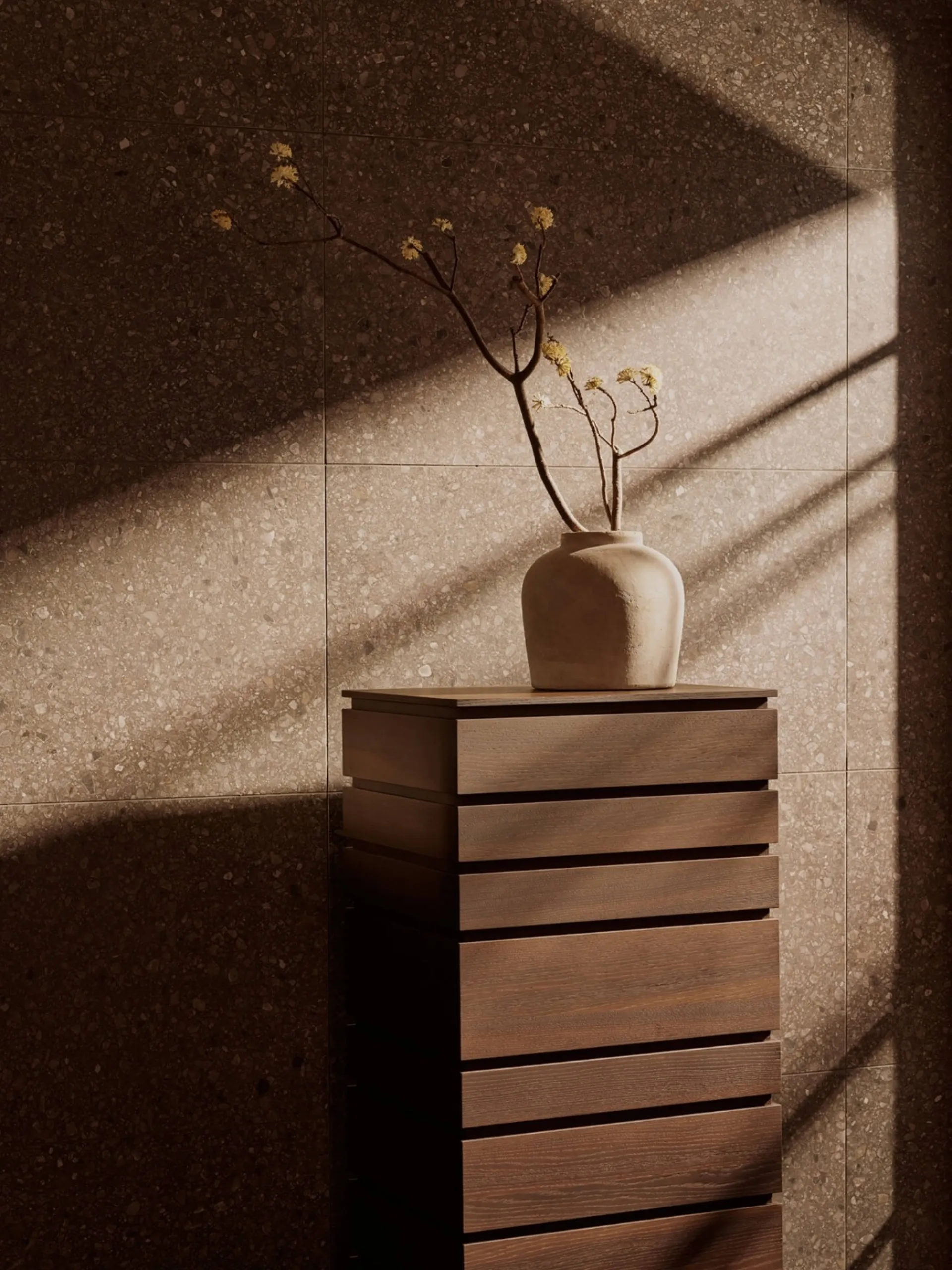 Enhance your bedroom: discover modern bedside tables and dressers, including the Nine wooden chest