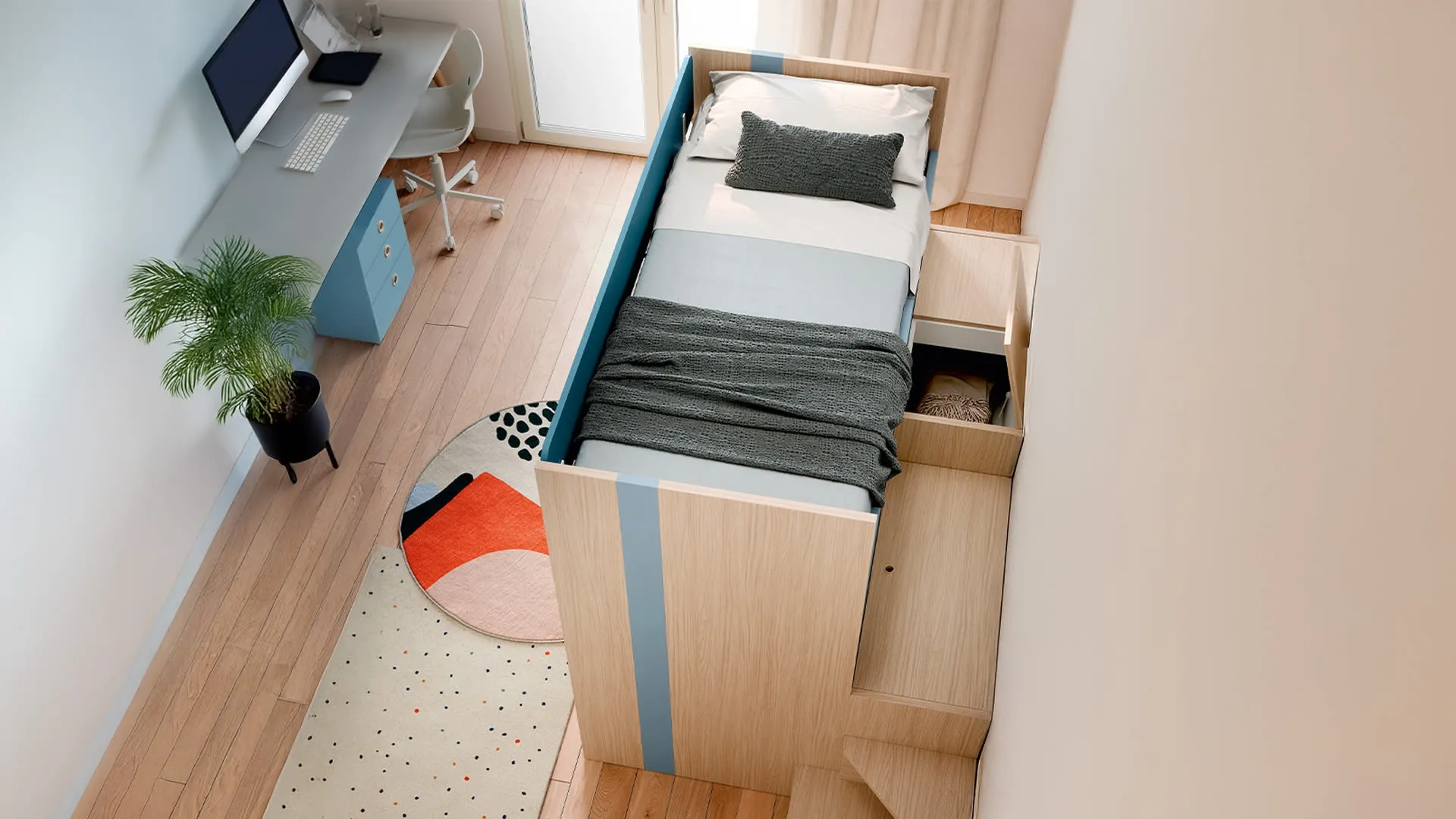 The renowned brand offers various modern solutions, turning the bedroom into a space where children can grow and dream. This solution with a melamine finish, among those with bunk beds for children by Nidi, meets the demands of adults and the tastes of the young. To perfectly design the bedrooms, Nidi offers design and versatile solutions: there are numerous activities that your children can carry out there. Visiting us means seeing in person all the most exclusive solutions for children with melamine bunk beds that we present in our showroom.