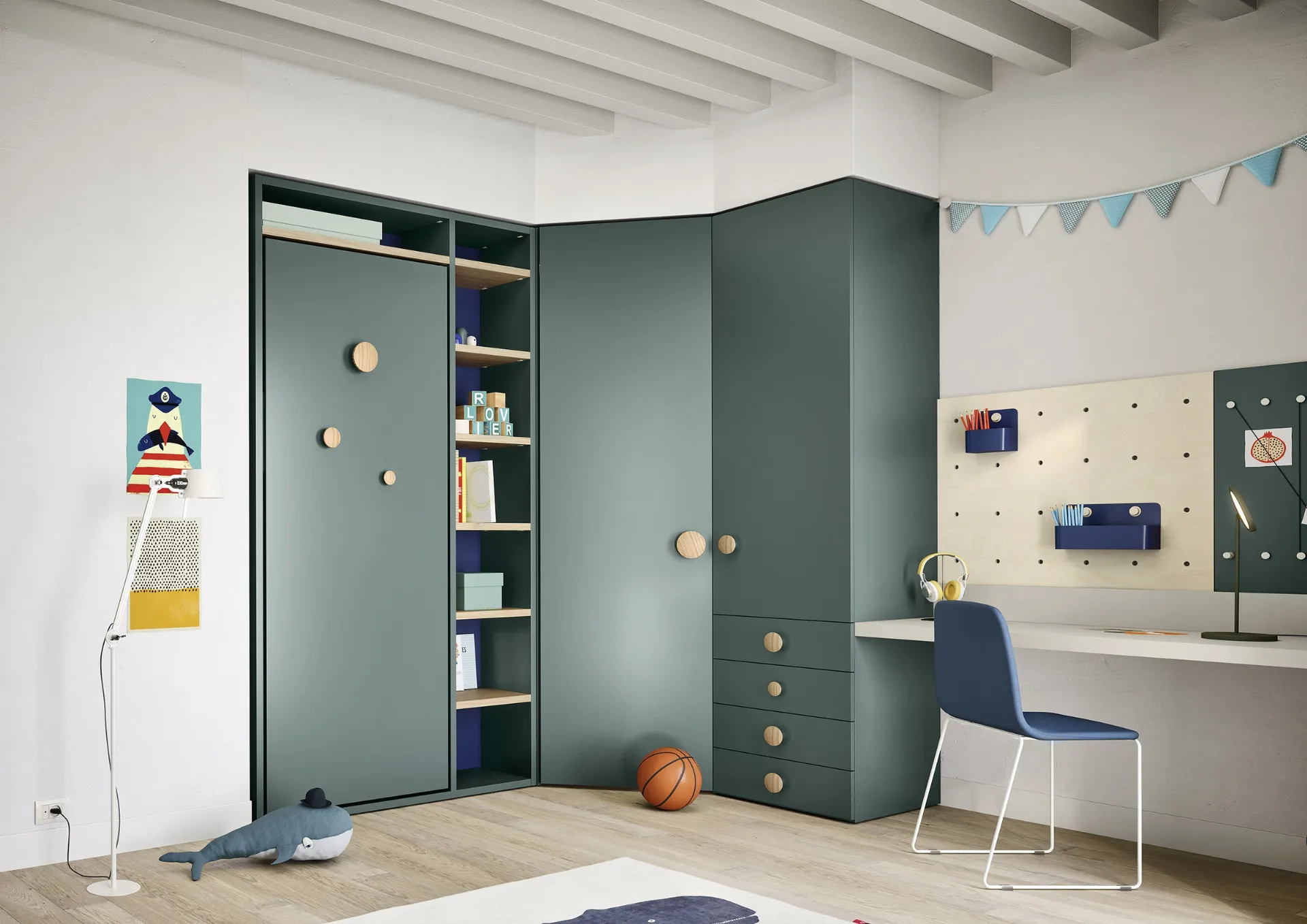 High-quality materials and non-toxic paints distinguish the proposals of the brand, among which you will also find modern space-saving solutions ideal for you. The accessories available for Nidi's space-saving children's rooms are always adaptable, to avoid any difficulty with space and functionality. The renowned brand's space-saving children's rooms are available in different versions, which always meet children's needs. Discover in store the Twiddy melamine Space-Saving Children's Room by Nidi: it is designed to perfectly create a comfortable, beautiful, and well-organized environment.