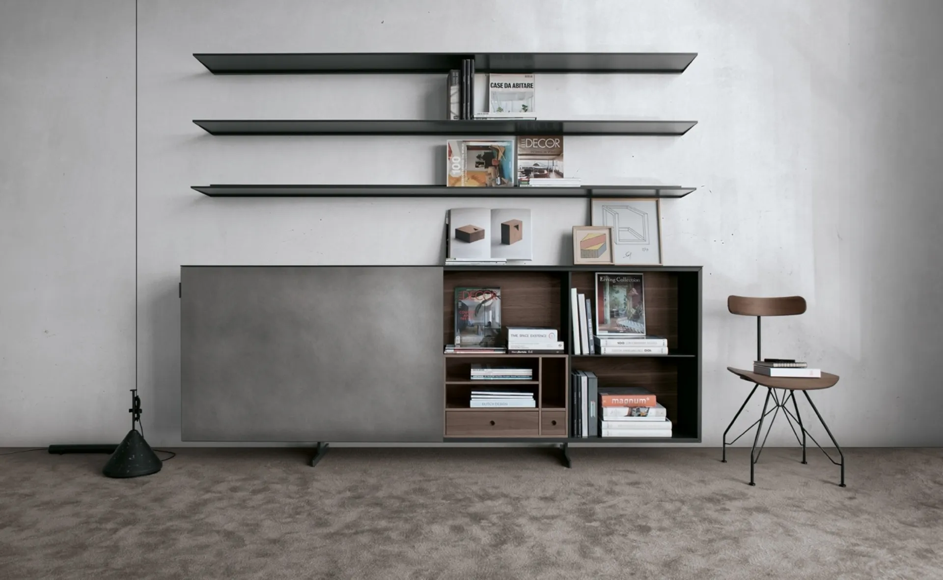 The Extendo Monolith Wall Unit configuration 11 in the photograph offers high modularity and a variety of customization options: discover the wall unit available here and contact us for more information and quotes. Whether wall-mounted or freestanding to optimize an open space, the most beautiful furniture compositions on the market decorate the living area by making good use of available space. Enhance your interiors with Extendo's modern Wall Units: in our showroom you will find furniture and designer accessories, made of quality materials from the best manufacturers.