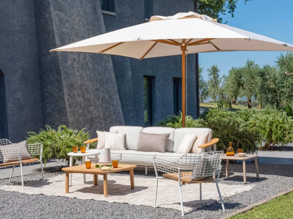 Discover our series of Emu wood umbrellas: the Signoria umbrella model visible in the photo is wait