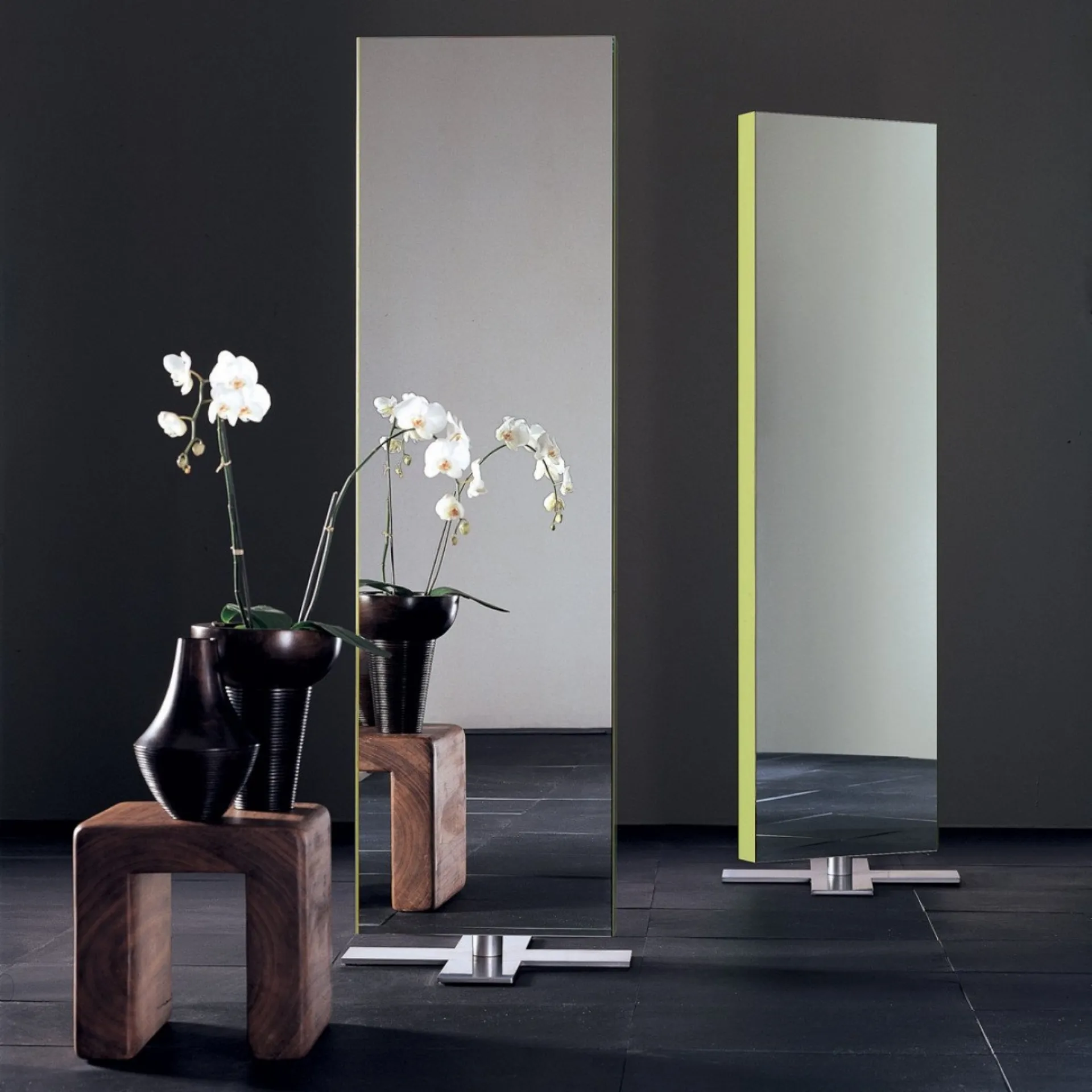 Ground mirror Giano with Stelo by Glas Italia in metal: it will add character and charm to an interior furnished with modern furniture and accessories. Complements and mirrors complete the home décor, occupying space in a useful way and making it highly functional and visually pleasing. Highly versatile and multifunctional, modern metal complements serve different purposes: they enhance functionality and aesthetic value of the room. The charming furnishing compositions from Glas Italia brand decorate the living space with their colors and style, recreating unique ambiances. In our store, you can experience the excellence of modern metal mirror models from the brand, just like this solution shown in the photo.