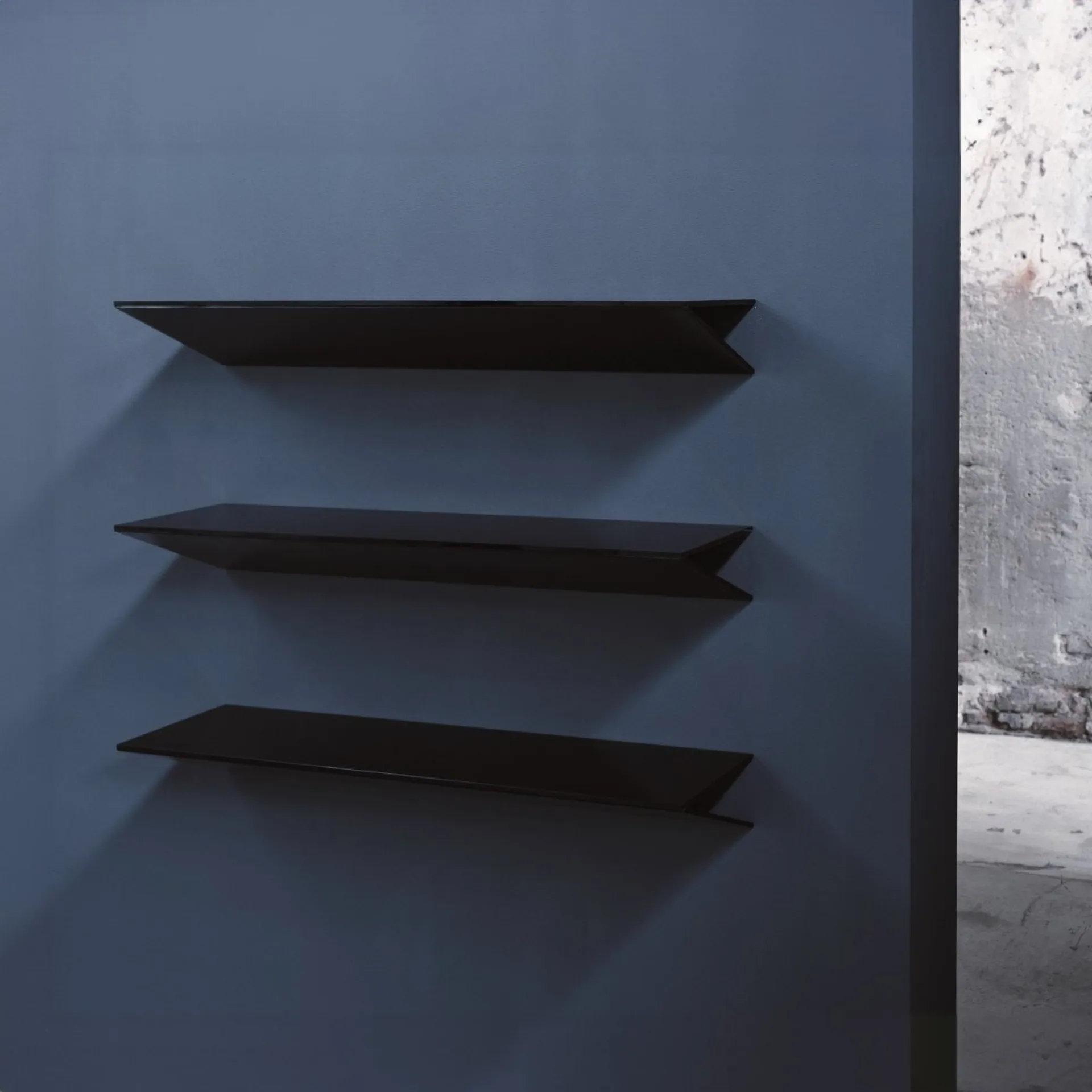 In our store, you will be able to experience firsthand the excellence of the company's modern glass shelves models, just like this solution in the photo. The brand Glas Italia's beautifully designed compositions enhance interiors with color and style, creating unique decorative atmospheres. Accessories and shelves personalize the home decor, occupying space in a useful and aesthetically pleasing way. Highly versatile and multifunctional, modern glass accessories serve different purposes: they enhance both the practicality and the aesthetic value of the environment. Glas Italia's On glass shelf: it will add personality and charm to a space furnished with modern furniture and accessories.