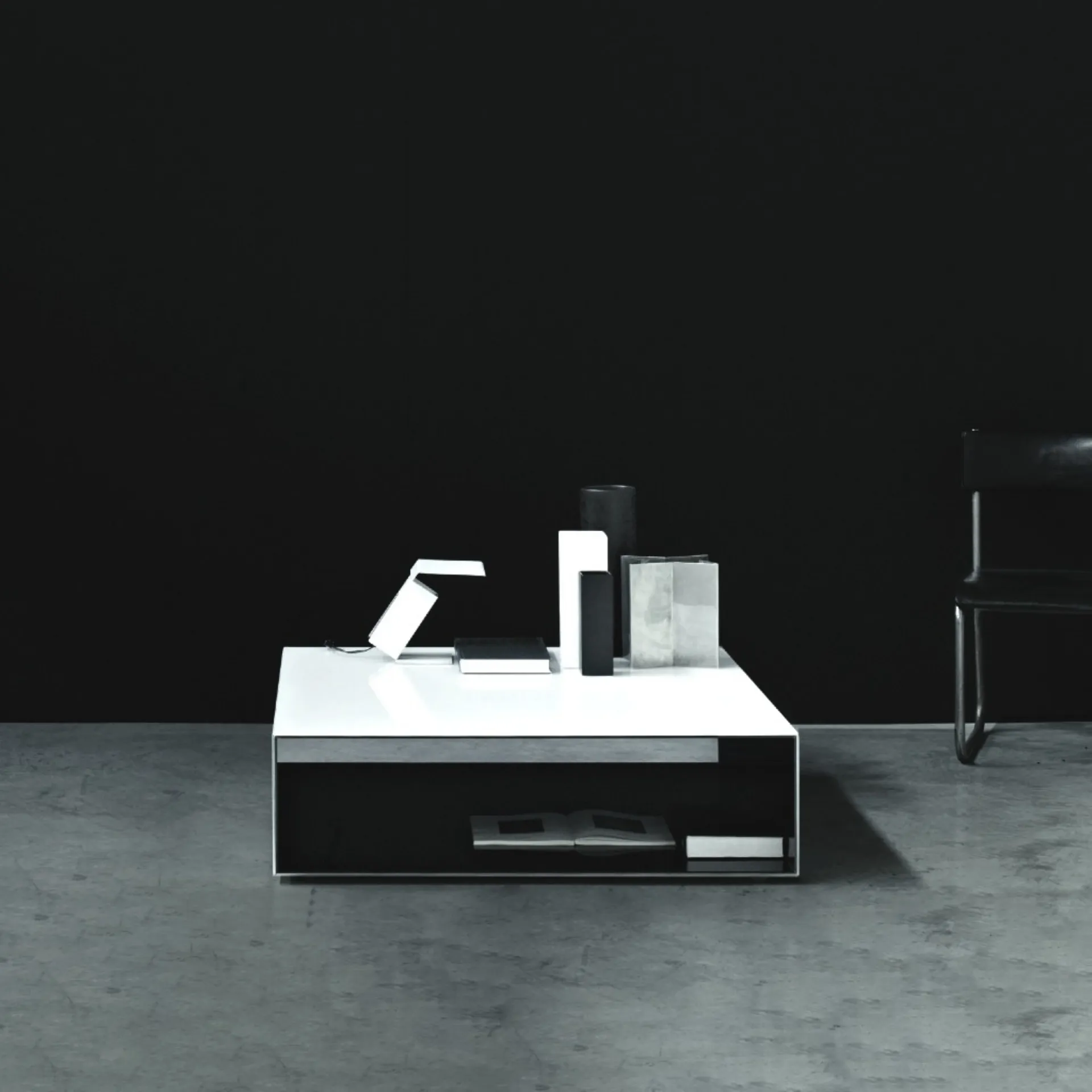 Very versatile and multifunctional, modern glass complements serve different purposes: they enhance the practical qualities and aesthetics of the space. Glas Italia's SiO2 Tunnel glass coffee table will add character and charm to a space furnished with modern furniture and accessories. The brand's high aesthetic value furniture compositions enhance interiors with their colors and style, creating unique atmospheres. Complements and coffee tables personalize home decor, making the space useful and highly aesthetically valuable. In our store, you can witness the excellence of the modern glass coffee table models in person, just like this one featured in the photo.
