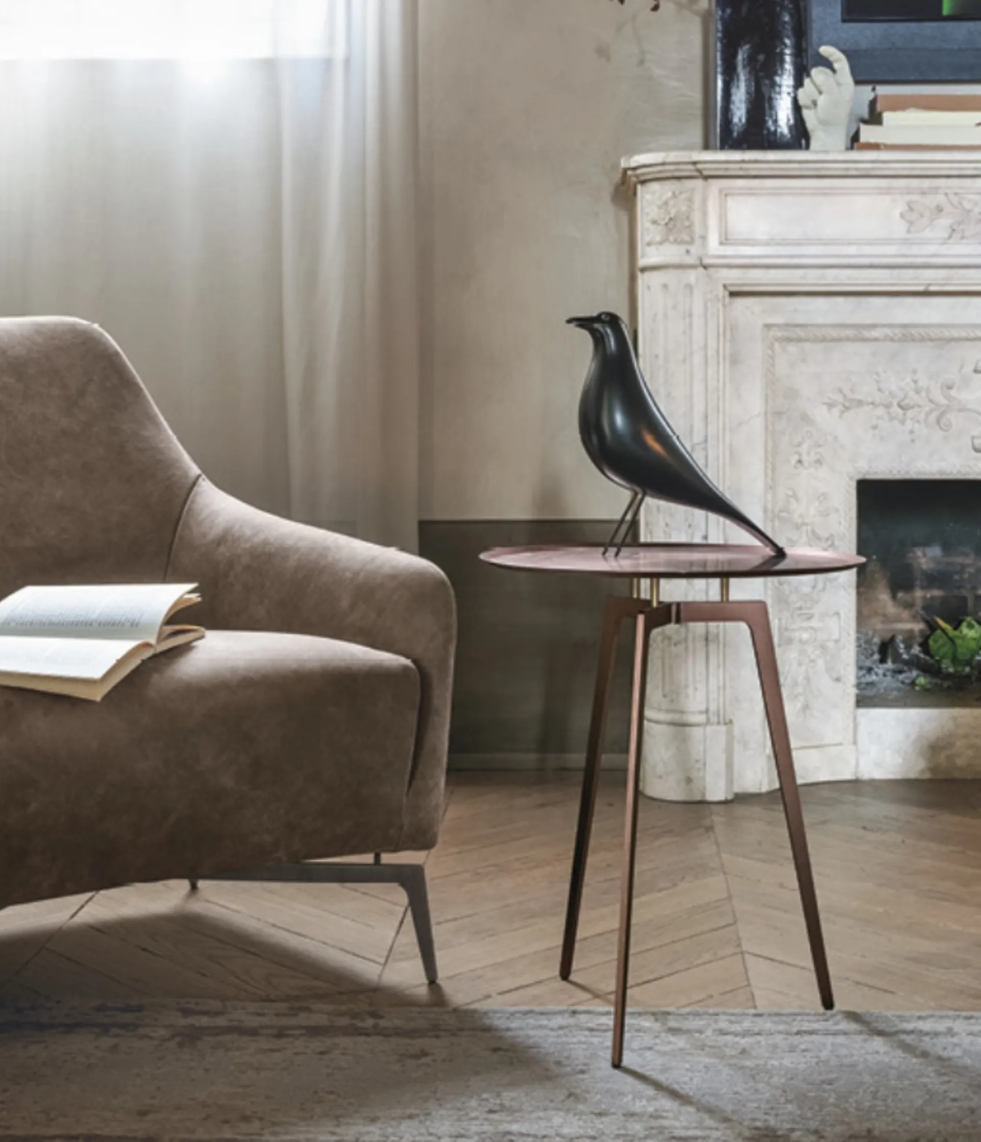 Discover our line of designer accessories and coffee tables such as the T-Gong model in the photograph