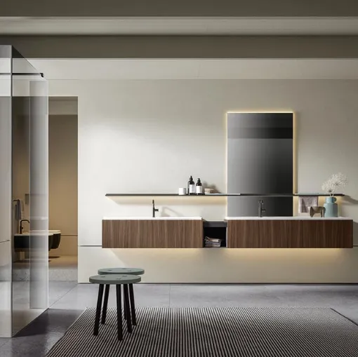 Home bathrooms differ both in taste and size, so it is essential that everyone finds the ideal solution for their needs. The colors, materials, and modules that the brand offers for modern bathroom furnishings with suspended bathroom furniture provide the possibility to organize multiple contexts. Each project made with the brand's products is customizable with suspended bathroom furniture of every kind, always made with high-quality materials and resistant. The bathroom is the environment aimed at relaxation and personal care practices, so it should be furnished by mixing practicality and design. Here we propose the model of the suspended bathroom furniture Ade 002 by Edoné in wood, which optimally enhances the space while ensuring functionality. With a wide range of compositions from the Edoné brand, you can organize the bathroom in every detail, solving your housing needs.