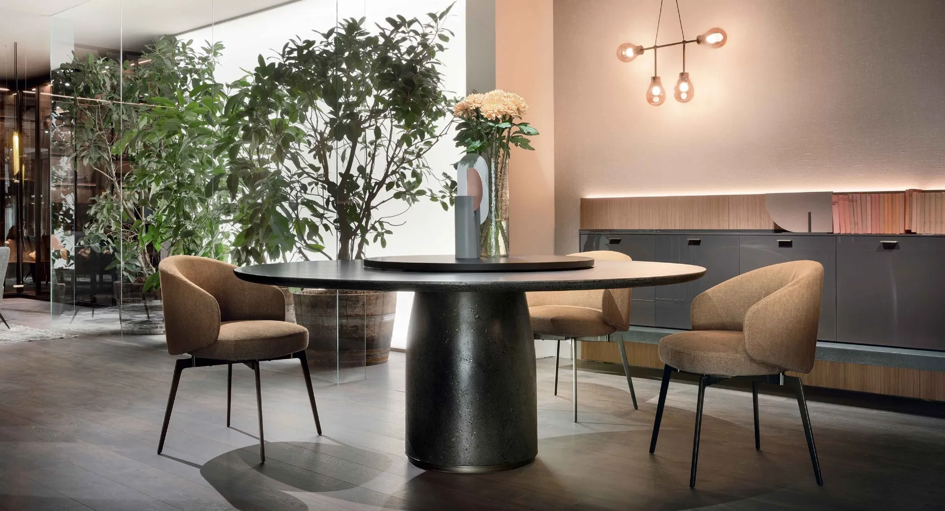The Bea fabric chair by Lema visible here is part of our line of modern fixed chairs