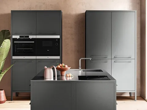 If you desire a modern Fantin kitchen, Frame Tone-on-Tone 01 in metal awaits you at our space-saving single-block Modern Kitchens store.