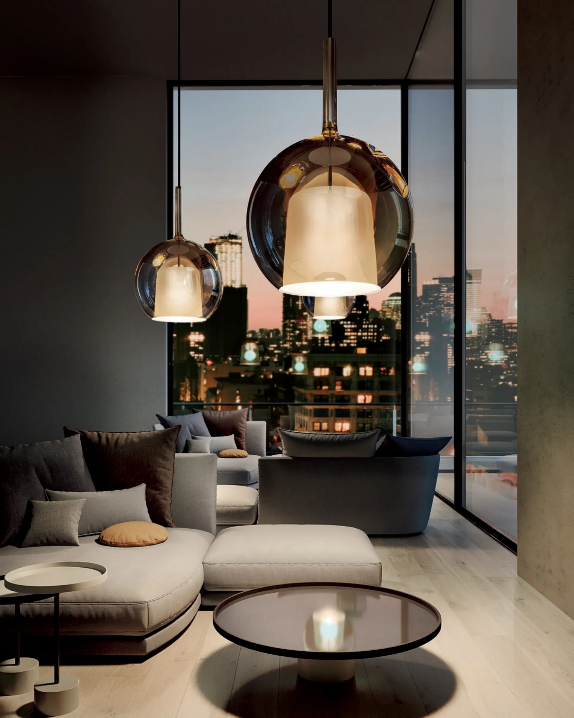 It does not impose style choices: Pentalight's Maxi Glo suspension lamp in glass stands out for its excellence in materials and technology. The fixture in the photo emits a pleasant light and its sleek lines make it suitable for spaces with different moods, always enhancing their aesthetics to the fullest. In our store, we showcase the most efficient lamps on the market to meet every need: the most exclusive quality options await you. The world of lighting communicates with a specific alphabet but at the same time, it interacts with home furnishings, mixing practical qualities with aesthetic ones. Pentalight offers a variety of designer suspension lamps for interiors that can characterize spaces with a certain style, always in durable materials.