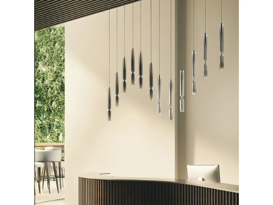 It does not limit stylistic combinations: the Misty pendant lamp by Pentalight in glass stands out for the excellence of materials and technological content. The sector of lamps has a particular language but simultaneously dialogues with home furnishings, mixing the qualities of practicality with aesthetic ones. In our store, we offer the most efficient lamps on the market to meet every expectation: the most exclusive quality proposals await you. The fixture in the photo diffuses a pleasant light and with its lines fits into rooms of various living contexts, always highlighting the aesthetic value to the fullest.