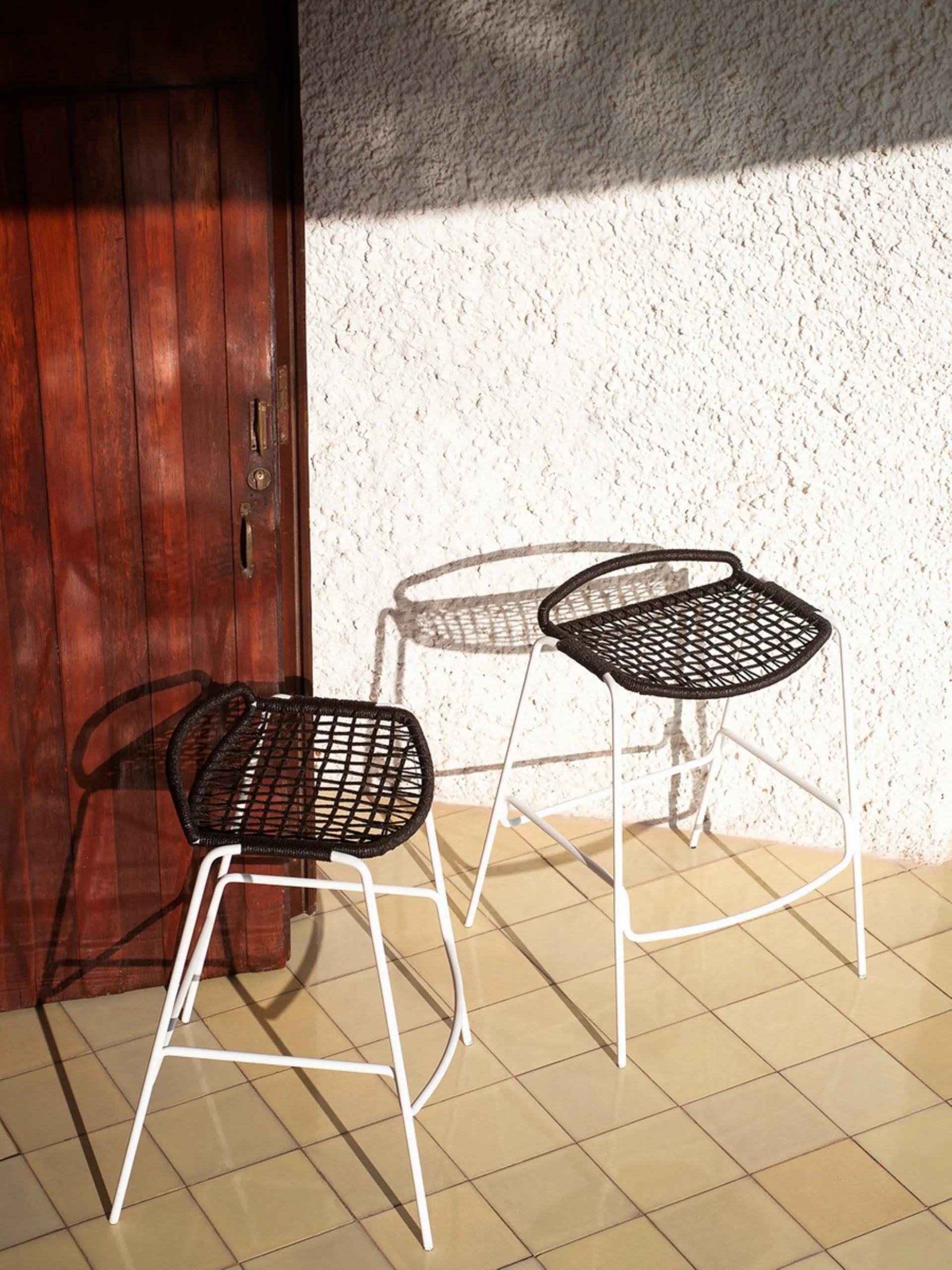 Discover our line of garden stools in Potocco fabric: the Egao stool model visible in the photo awaits you