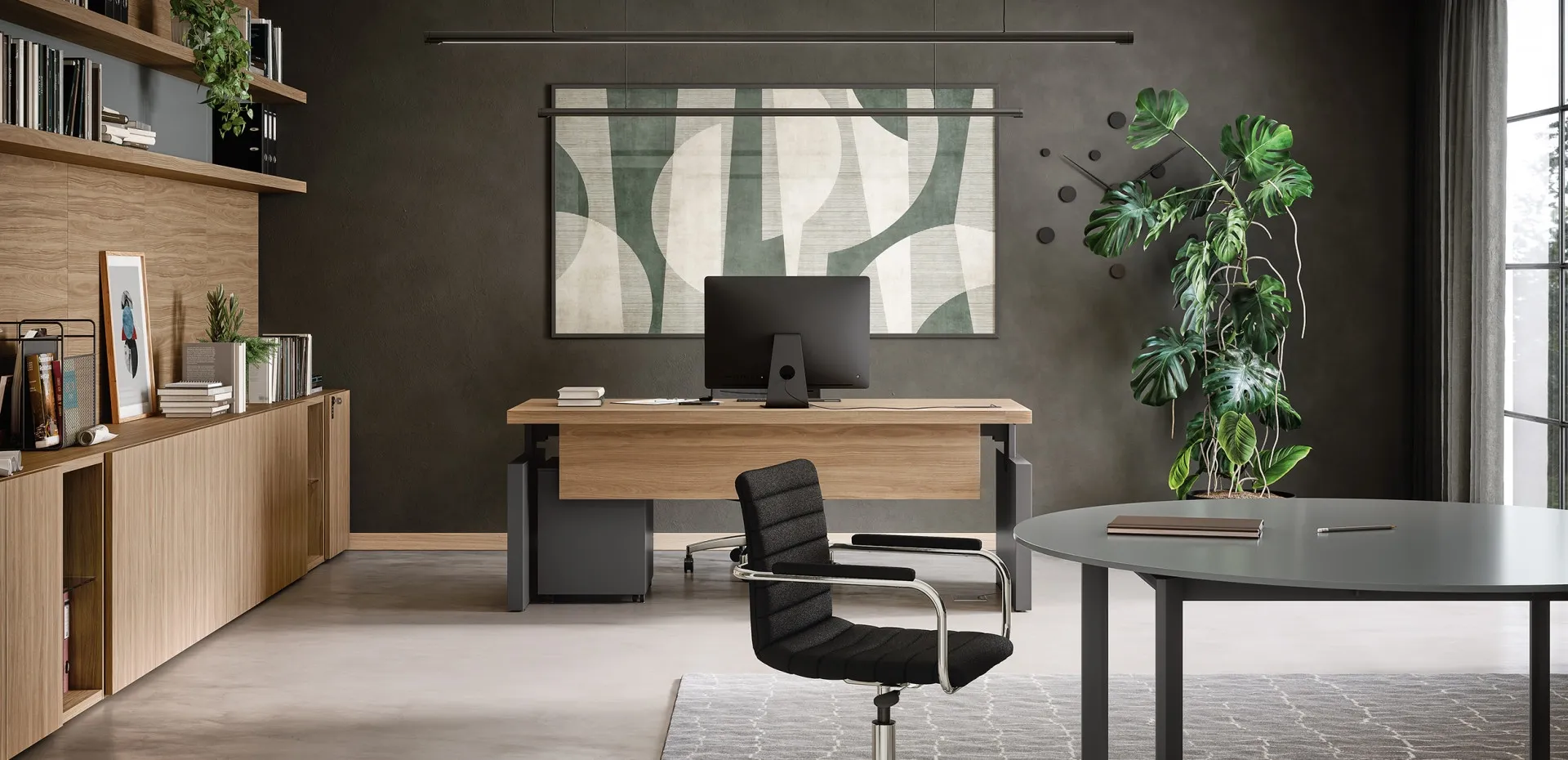 Executive Desk 01A by Cinquanta3: it is part of the almost endless range of office furniture for work environments from the brand, a leader in the world of Office Furniture. At our store, you will be able to see in person all the most exclusive compositions of Office Furniture in melamine available on the market, always of excellent quality. Cinquanta3 creates furniture of excellent quality, always able to meet various requests regarding both aesthetic value and practicality. The proposal in the photo, among the various models of executive desks signed by Cinquanta3, will add personality and elegance to the spaces, equipping them by mixing rationality and logic. Build your work space with solutions of executive desks in melamine from the brand: the rich series of furniture for your office is waiting for you in the store.