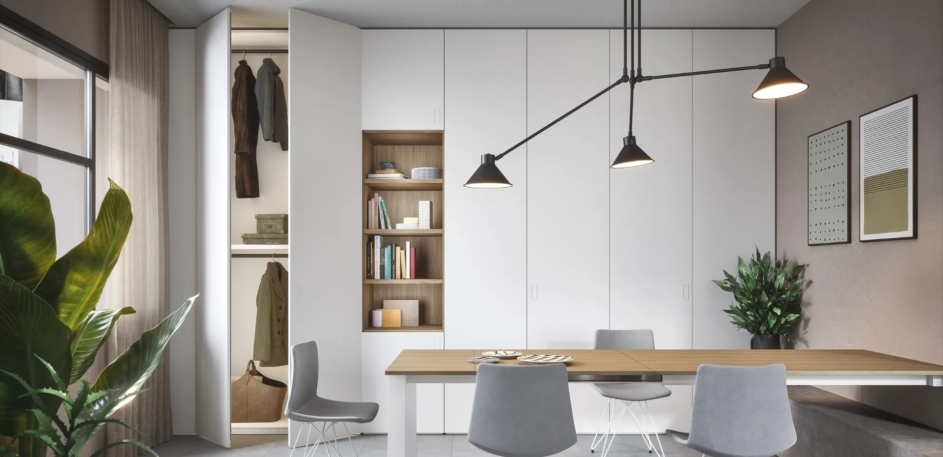 The purchase of the most suitable Office Furniture for your needs is essential if you want to recreate a versatile and easy to use space. In our showroom you will discover Office Furniture compositions with melamine office cabinets from the best brands to complete the space with rationality and coherence. This model, among the many melamine office cabinets from Cinquanta3, is tailored to complete the furnishing of workspaces with practicality. The compositions we offer in our showroom are the result of the many years of experience and dedication of leading companies in the sector, such as Cinquanta3. Wardrobe with swing doors 05B Cinquanta3: tailored to solve various issues, it optimizes all available spaces enhancing their aesthetics.