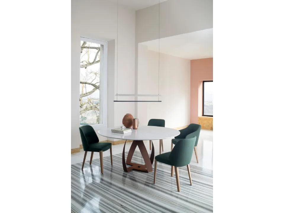 Contact us and get information about the Concha fabric chair by Potocco model shown in the photo. In addition to serving an essential function, these pieces of furniture can enhance a monotonous and accessory-free room. In our store, we present exclusive furniture and accessories, among which you will certainly find the solution that suits you. Among the best brands available in our Home Furnishings store, you can find the most beautiful fixed dining chairs on the market. Modern chairs, whether made of wood or upholstered, are complex furnishings characterized by an almost infinite range of colors, shapes, and patterns. A fabric chair like the one shown here decorates a living room or kitchen area with high aesthetic content, embellishing the spaces.
