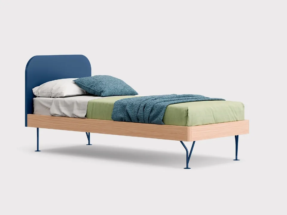 A rich range of modern melamine beds awaits you: the Nidi brand offers different versions of beds that always meet the demands of children. Learn more about the Single Turn bed by Nidi in the image: it is perfect for creating a comfortable, beautiful, and well-organized environment for your children. High-quality materials and environmentally friendly paints characterize the brand's offerings: if the room is not spacious, there are different solutions available that always combine functionality and ergonomics. The Single Beds with headboard for the children's room available in store solve any space and practicality difficulties, while ensuring a unique design.