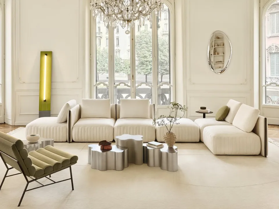 Saba Metis Corner Sofa: all products from the brand guarantee durability over time, quality of materials and coverings, defined shapes and unique design. If you desire a fabric composition, discover a rich catalog of high-design corner sofas. In the showroom, you will find a wide range of corner sofas, some of which are ideal for designing your living room with style and practicality. If you are looking for one of the models of designer sofas with fabric upholstery, visiting our store will allow you to discover the most exclusive proposals signed by Saba. A rich catalog of designer sofas and armchairs is waiting for you in the store. Completing your living room by selecting style, tones, and accessories is essential: with Saba Sofas, you can create the furniture project you have always wanted.