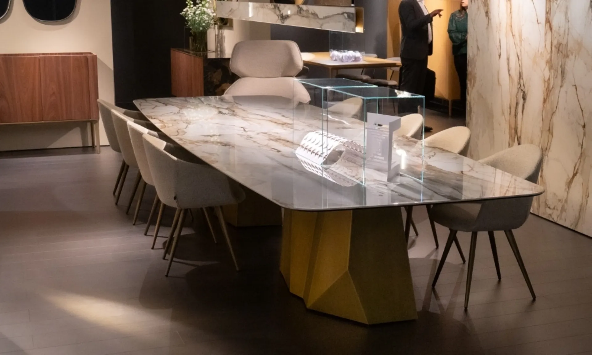 The fixed Sovet tables, including this Grandeod MAXI dining model for design spaces, await you