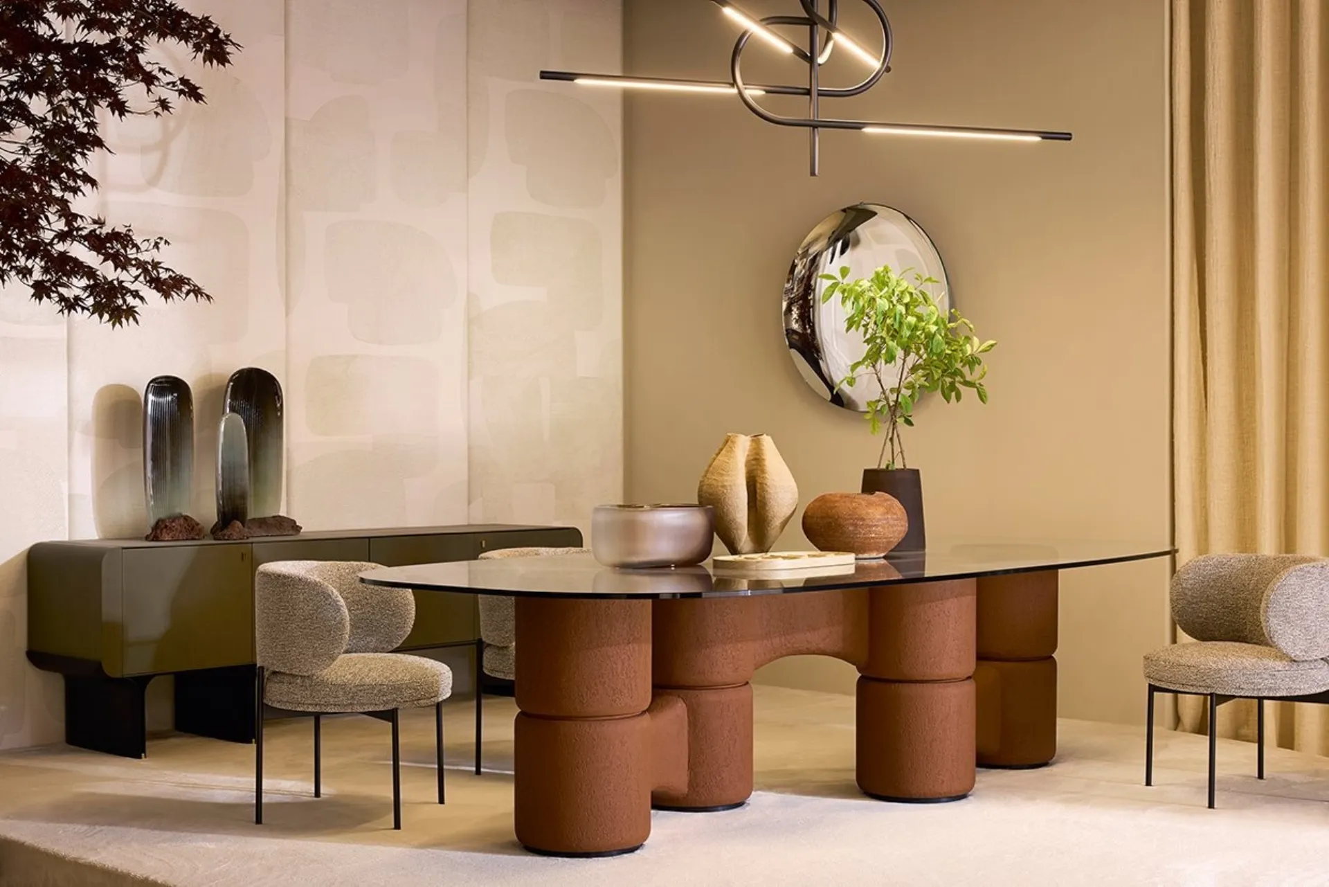 The Gallotti&Radice fixed tables, including this Molecola dining model for design spaces, await
